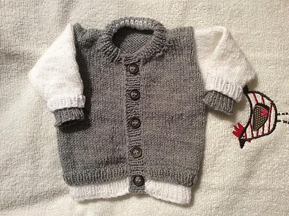 You can use any yarn which you can get gauge with, I used Stylecraft DK, and for the smallest size, made two jackets out of a single ball of each colour.