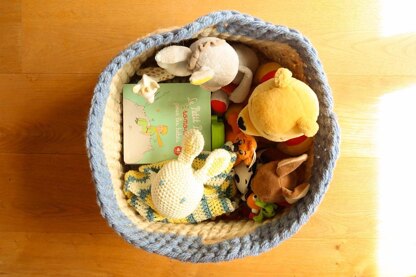 My son Basile loves to empty & fill boxes and bins. I got sick of his toys laying everywhere so I designed a low basket to put them all away and that he can play with to put his toys in and out!