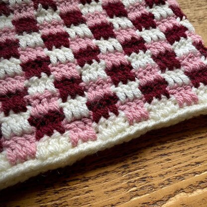 The pattern includes a size chart 5 different sizes. Baby’s receiving Lapghan Single/Twin Double/Queen King