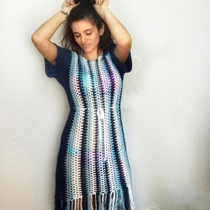 Bay Breeze Cover up is named after all the boat trips made out on the bay growing up. The pattern is made in one piece, with vertical stripes to length and slim any body type! The open filet stitch, and light cotton makes it open an airy for the hot summer sun.