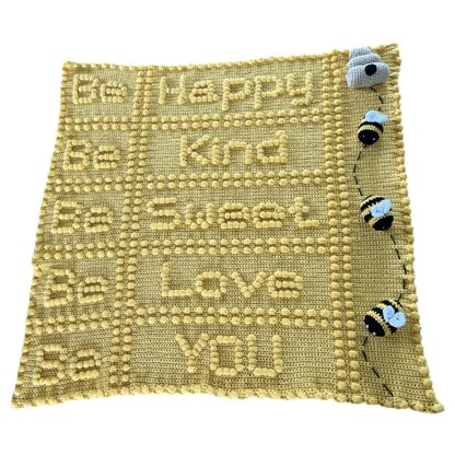 Blanket is made up in one-piece with full written instructions and also charted. Bees and Beehive are made up seperately and then sew onto the blanket.