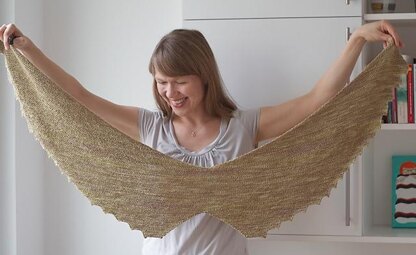When I got this yarn with its silky green-golden shimmer, I just knew it had to become a pair of angel wings: "Be my Angel“ is knit entirely in garter stitch and will feel like a warm, loving hug. Due to its special symmetric shape there are several nice ways to wear this: over the shoulders or wrapped multiple times around your neck. And when you put it on, you will always have that little moment when you spread the wings and pretend you are an angel that is about to take off to do good things for the people in this world! It also makes a great gift for anyone who you want to feel protected and loved by a handmade angel hug. The knitting is logical, simple and relaxing and suitable for beginners or advanced knitters who enjoy a little comfort knitting.