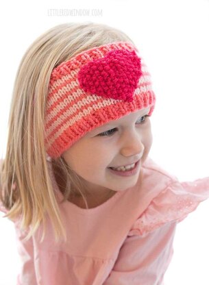 This cute Valentine Heart Headband knitting pattern is a warm, cozy and quick knit perfect for your little one! The headband itself is knit in the round on circular knitting needles, but there is no need for double pointed needles, yay! Then the cute seed stitch heart shape is knit flat and with a little easy knitting magic, it's knit all in one piece! No weird fiddly parts! You're going to love this knitting pattern!