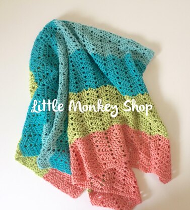 Crochet Pattern for "Beach Baby" Baby Blanket - An modern lap size blanket - 28" X 30.5" with instruction on how to adjust the blanket to any size you want. It's simple enough for beginner crocheters but also great for the more seasoned crocheters as well.