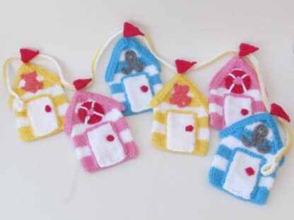 This product is the knitting pattern only; to knit your own Beach Hut Bunting.