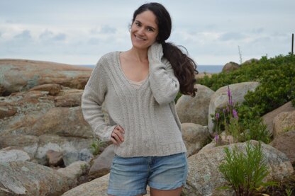 Beach Life is the perfect crisp and cozy sweater for layering on a trip to the beach! New England beaches can be breezy and cool and I wanted a simple cotton pullover to wear for bonfires and dog walks on the beach; Beach Life is the end result! The sweater features an oversized, boxy body with a split, uneven hemline. The sweater is knit in reverse stockinette and features some ribbing up the center-front that splits for the V neckline. Knit up in Valley Yarns Hawley yarn, it is quick to knit and the cotton/ silk blend makes it perfect for spring-fall weather!