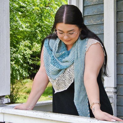 Garter stitch stripes bring to mind traditional nautical jumpers–mix these with lace patterns depicting tiny waves and seafoam and this shawl is definitely putting out beach vibes!