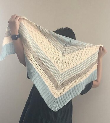 Beachside shawl is a shawl with different stitches. This is a nice project for using your leftovers. There are total of 8 sections in this pattern. You can arrange these sections as you like. All you have to do is increase 4sts every RS row to grow the shawl.