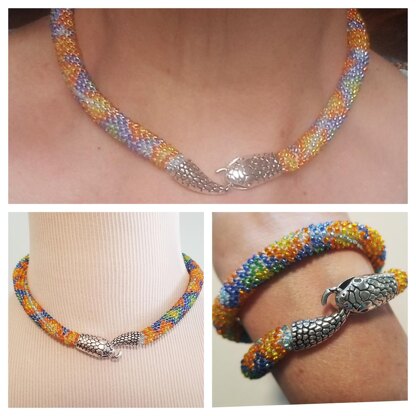 As shown, I used a snake head and tail as the jewelry end cap and clasp, but you can easily modify to fit other end caps or findings.
