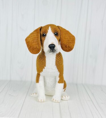 Materials you will need: You can use any yarn what you like for your amigurumi, just make sure both colors are the same weight (thickness). • I used PREMIER ANTI-PILLING EVERYDAY® WORSTED, worsted (#4) weight, snow white and caramel colors, 1 skein of each color. 3.5 oz/100 g, 180 yds/165m • Crochet hook 2.75mm. 2.25mm • Plastic eyes -10-12mm or make custom. • Nose – 20mm. Plastic safety nose or bake it from polymer clay. Synthetic fiber for stuffing a dog • Gel Super Glue (I use Gorilla) • Wire for front legs – any wire what is 2mm diameter or 12 gauges. • Optional: Dry pastel or eyes shadows to paint the toy