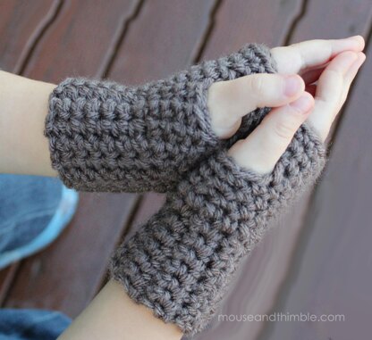 Easy to crochet. Basic 3 piece winterwear set for toddler boy or girl. Pair of fingerless gloves (quick for little hands to manage on & off themselves), bulky beanie hat and scarf made with 2 skeins of medium weight yarn.