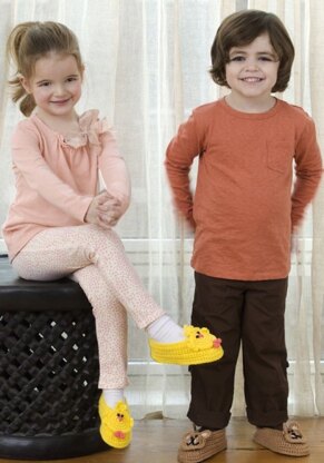 Bear and Chick Slippers in Red Heart Super Saver Economy Solids - LW2500