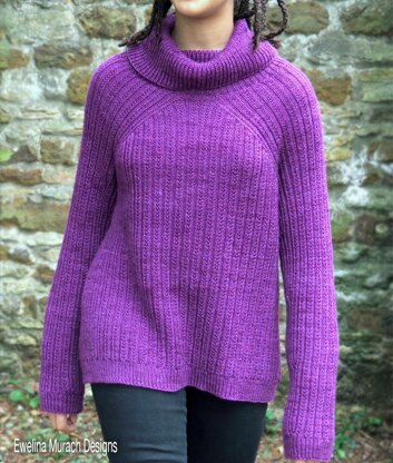 Bear Hug is a relaxed, seamless, top-down pullover made in a simple but interesting beaded rib stitch that creates a very soft fabric—wearing it feels like a warm hug. You can work the body with hip shaping or straight. Finish your sweater with a loose turtleneck or a neckband, and make it just the way you like it.