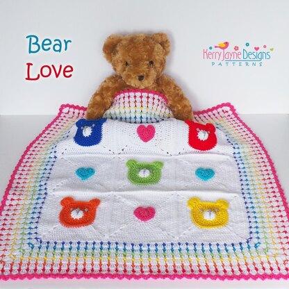 This Teddy bear and heart blanket is just the right size for a new baby, little enough to fit the moses basket and stroller or can be folded in half for the car seat :-) Size 22 x 22" May be made to any size, simply by adding more or less squares.