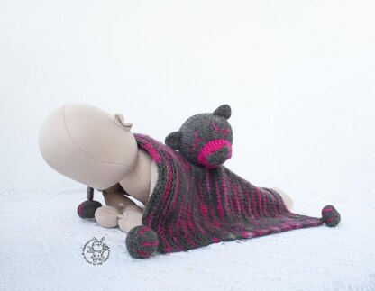 Materials needed: • 4 double-pointed needles in a size suitable for the yarn weight you are using. I recommend using needles a size or two smaller than the yarn calls for, to produce a firm fabric. İ used Needles size 5 (3.5mm) for Blanket, size 2,5 (3mm) for bear • Brown (color Walnut 1054) and pink (color Bright Pink 1435 ) acrylic yarn Stylecraft Special DK (100% acrylic 304 meters / 100 grams) • Mélange yarn Schachenmayr Bravo Color ( color Beere Color (02088) Light Worsted 100% acrylic 133 meters / 50 grams ). • Yarn needle • Stitch holder • 1 button for attaching the head to the blanket