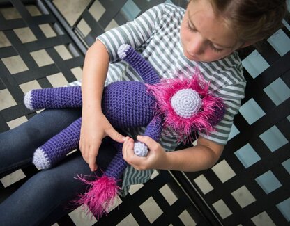 Crochet your own cute little bearded monkey using worsted weight yarn along with a small amount of eyelash yarn.