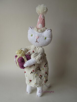 Beatrice is knit on the flat in DK wool. Gauge is not critical. Instructions are for the cat, dress, hat & present. You will require 50g of white & ecru wool & small amounts of the other colours. ..........................
