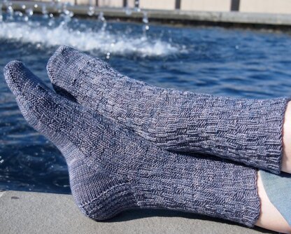 These socks feature a super-stretchy pattern reminiscent of mountains. Beau is the name of a fine young man, whose father is my photographer; and it is also the French word for beautiful. I thought this would be suitable for both fine young men and beautiful ladies.