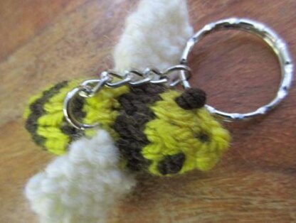 This is a pattern for a Bee Keyring. It is a quick project to make, and a good way to use up left over yarn.