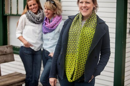 Here is an infinity scarf, worked in two colors that take turns being front and center! Shown in Plucky Oxford and Plucky Crew, Beehive is the perfect place to pair any two colors that make you smile. You might choose two complimentary colors for a classic look, or maybe two colors that are totally unexpected for a POP!