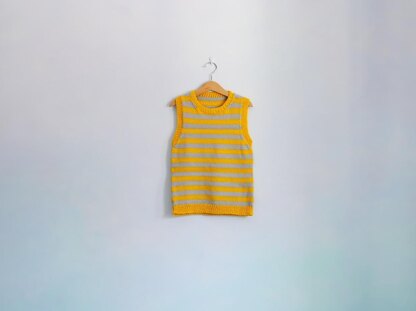 Beez is a year-round layering garment for babies and kids. The round neck and bright color stripes give it a more contemporary look than the classic v-neck vest.