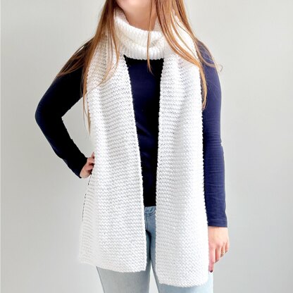 An absolute beginner scarf, that knits up fast and is lovely and warm, thanks to the chunky/bulky yarn.