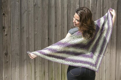 This triangle shawl uses a variation on the granny square stitch, making it an easy project for granny square lovers. A thin yarn in spring colors transforms this pattern into a lightweight shawl. Use the same stitch pattern with a thicker yarn for a cozy fall or winter shawl. Let the yarn do the color work for you by choosing a self-striping or long color repeat yarn.