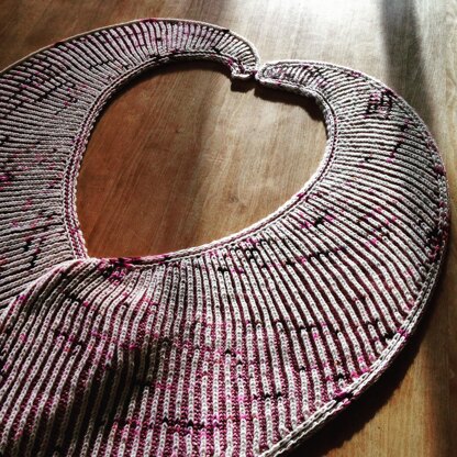 All I was looking for was a narrow, slightly asymmetrically shaped triangular brioche shawl, that can be wrapped around my neck. I didn´t like to handle some hundreds of brioche stitches on my needles and I was looking for some mindless knitting to travel with. To be honest, this shawl is a real one row wonder. Repetitive increases and decreases are only worked every 4 rows, giving the shawl its unusual shape. You start at one end, so you can stop anytime. Using the light color applied I-cord is then worked across for a clean finish. You end up with a gentle curved colorful shawl. A perfect project to relax and very suitable for brioche beginners and young knitters.