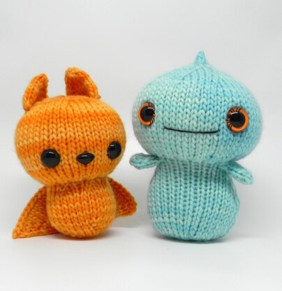 Sizes: Belfry the Bat is approximately 5.25” tall from base to top of ears and Boo-yah! the Ghost is approximately 6” tall from base to top of head. Both samples were knit with Worsted weight yarn.