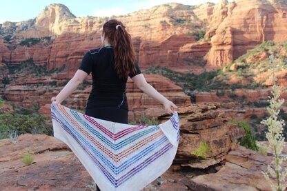 Bell Rock is a timeless Triangle shawl with seed stitch and a tiny bit of lace touches. A perfect way to use up some lefts overs, so nothing goes to waste. This looks gorgeous in 2 colors, but would be amazing in many colors. Top down design, with an easy to memorize lace pattern.