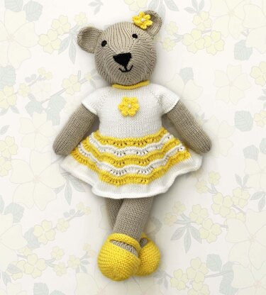 Bella, a cute 43cm (17 inch) teddy bear knitting pattern and she comes complete with her lovely dress, shoes and flower for her hair. This is an 11 page pattern with clear instructions and lots of photos. The patterns are knit flat and seamed and are very easy to follow. Bella's finished measurement is approximately 43cm (17 inches) tall. All yarn amounts are included in the patterns. ** SKILLS NEEDED TO COMPLETE ** HOW TO: Cast on Knit Purl Increase Decrease Cast off