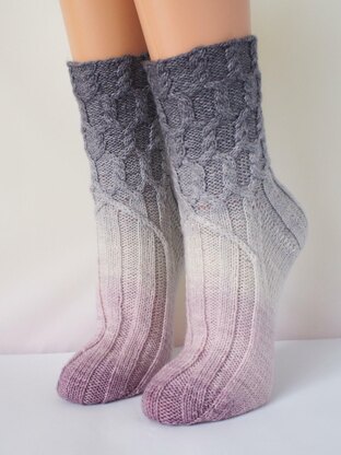 The pattern includes description for heel and toes, but you can also work the in your favourite pattern. The cable pattern is charted.