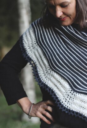 A fresh take on traditional lace shawls, Belle is a stylish triangular shawl with a gorgeous textured lace border and stunning stripes.