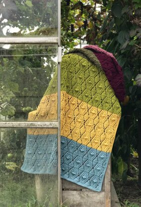 Yarn : Stylecraft Bellissima, 100 % premium acrylic, 100g/268m/293yd 2 balls of each of the following shades : 3923 Ash Rose 3930 Bashful Blue 3933 Crushed Plum 3925 Mellow Yellow 3927 Overly Olive 3926 Sugar Snap