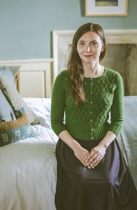 Sizes 30 3/4 (33, 35 1/4, 37 1/2, 39 3/4, 42, 44 1/4, 46 1/2)”/78 (84, 89.5, 95.5, 101, 106.5, 112.5, 118) cms at chest Recommended to be worn with approx 0-1 inches of negative ease Shown in size 33 inches with 1 inch of negative ease