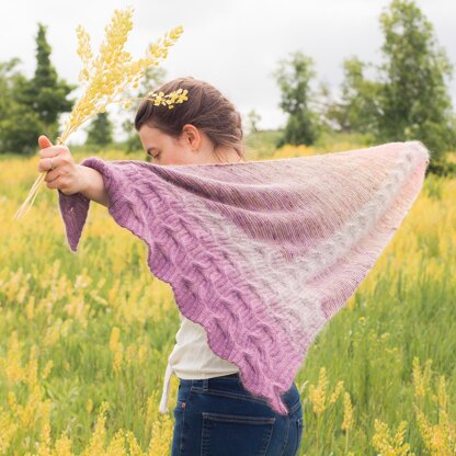 This stashbusting shawl takes root in your previous knitting projects, inheriting their leftover yarns to create something new and unique. To beautifully showcase all of its ancestors, the Beloved Roots Shawl is made in garter stitch to allow the composition of a graceful fade, no matter how many colors you want to use. A cable goes across the body and gets larger near the end, reminding of roots. To make it stand out, the cable part is worked with a strand of mohair held together with your yarns. The shawl is fully reversible and adaptable in size, it can be made larger or smaller according either to your taste or to the size of your leftover yarns bin!