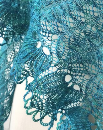 This lovely laceweight shawl, worked as a wedge / vortex, incorporates a pretty vintage leaf pattern with a flower edging. The versatile shape can be worn a variety of ways!