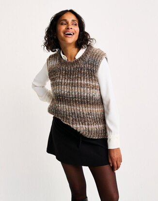 Perfect for between seasons, or an extra layer when the weather turns chilly, the Beneath The Surface Vest features cosy fisherman's rib with semi-set-in armholes and fully-fashioned tubular neckline in one-by-one rib for a neat finish. Knit in your choice of stunning, self-striping Sirdar Jewelspun With Wool. This intermediate knitting pattern is great for crafters with a little more experience.