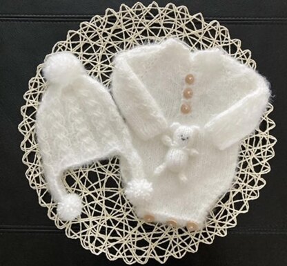 Fits both newborn and 21-22 inch reborn size knit 3 piece set pattern THIS IS NOT THE FINISHED ITEMS This is a downloadable PDF pattern for the knitting of this Benjamin 3 piece set in newborn/21-22 inch reborn size SIZE and NOT the actual finished items. Set includes romper, pom pom beanie with earflaps, bear lovie This is a lovely stitch and a fun moderately easy project for you to create! Skill level: Intermediate to moderate CROCHET IS REQUIRED TO COMPLETE bear lovie Materials Required for this Item: dk/light weight yarn For this romper I used Nako Paris in shade # 300 . I completed this set using an entire 100 gram ball Size 4.5mm (US 7) circular needle (16 inch length) 4.5mm crochet hook Darning needle 4 stitch markers 6 - buttons of choice I use my circular needle for the entire work up of this romper. This is a wonderful gift to make in no time or to sell as a Photo prop. Copyrights protect this design from being reproduced in any media format to be resold.