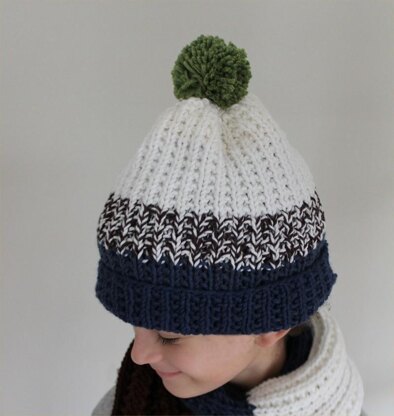 This hat is warm, easy to wear and great for a boy, girl, man or woman. It has a simple stitch pattern and the change in colors make it interesting and fun. The color combinations are endless. It is knit with a #11 needle at 3.5sts. per inch and is sized for 6 months up to a large adult.