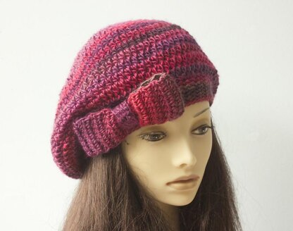 An easy beret hat crochet pattern that works up quickly and is great for last minute gifts. Its embellished with a cute bow.