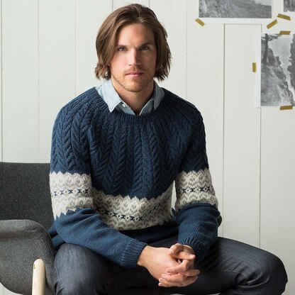 The Bergen Peak Pullover features updated takes on two classic techniques: Fair Isle and cables. This handsome pullover has flowing staghorn cables at the yoke and a striking graphic colorwork band. It is worked in the round from the bottom up.