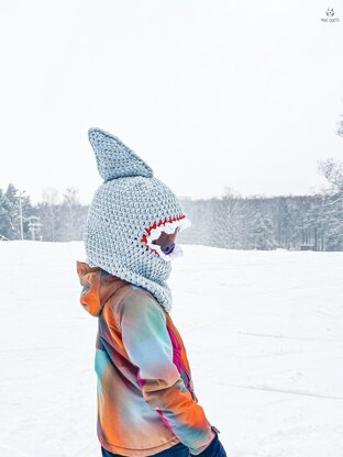 This fun and easy-to-make crochet pattern transforms your ski helmet or snood into a fierce shark complete with striking shark teeth around the eye opening and a bold fin.