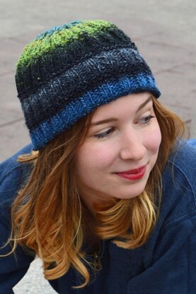 The hat is sized for either DK- or worsted-weight yarn.