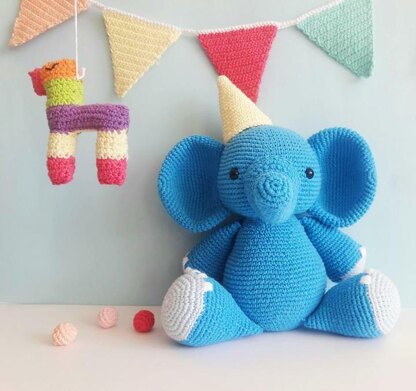 This a written PDF pattern to make Bernie the Birthday Elephant amigurumi.