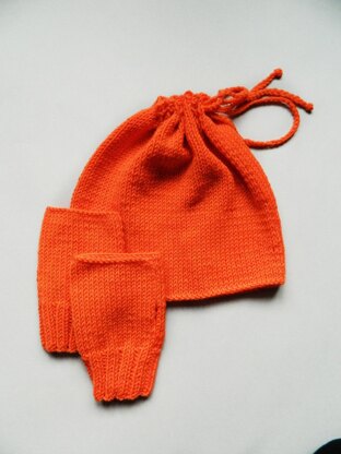 Berretto e guanti coordinati. Sono lavorati in piano e cuciti.