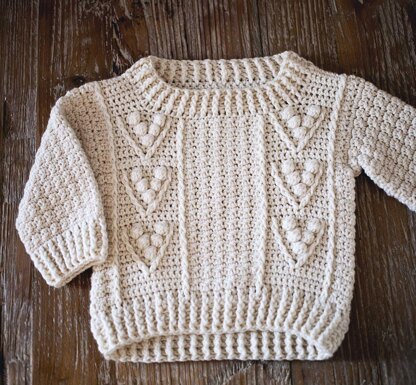 Berry Sweater is worked bottom up, in rounds, then divided for front and back. Sleeves are worked in rounds. The only seams to make are shoulders seams.
