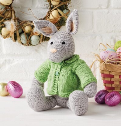 Bertie Bunkins is wearing a little green jacket to keep them warm whilst busy laying an Easter Egg trail. Bertie’s inner ear is added using Swiss darning embroidery (duplicate stitch), and a chart is provided. Designed by Amanda Berry @fluffandfuzz, the toys are knitted in acrylic DK yarns on single pointed needles (not in the round). For confident beginners and above, other techniques used include casting on and off, knits, purls, increases and decreases, and seaming to finish.
