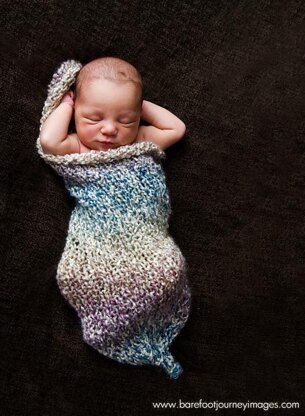 Look at any professional photographer’s work and you’ll see the ubiquitous Baby Cocoon. They are a must-have for the pros, who find them useful for keeping babies warm, snug, asleep and settled while they take those all-important first portraits. For the rest of us, baby cocoons are useful as swaddles or sleep-sacks, and for giving that precious little bundle a feeling of security. One skein and one day are all it takes to knit this up!
