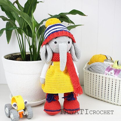 Elephant EMMA – size 32 cm (12.5 in), if using sport weight yarn (Sport (12 wpi), 2: Fine).